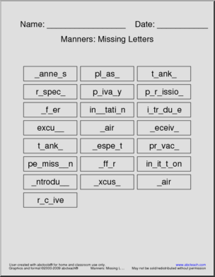 Content / Social Studies / Character Education / Manners