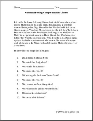 Content / Languages/ESL / German / By Theme / Die Hausarbeit/ Chores