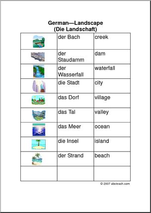 Landscape Worksheets in German for Students - Describe natural landscapes in the German language.