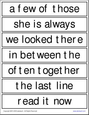 Content / Language Arts / Dolch / Dolch/Sight Words Phrases / Phase Word Strips--Text Only