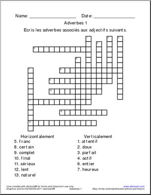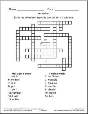 Content / Languages/ESL / French / French Word Puzzles / Crosswords