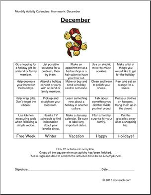 Content / Special Needs / Secondary/Adult / Independent Living Skills / Monthly Activity Calendars (secondary/adult)