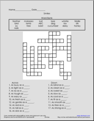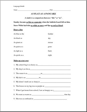 Similes Writing Worksheets for Students - These worksheets focus on similes as a literary device, encouraging students to use vivid comparisons in their writing.