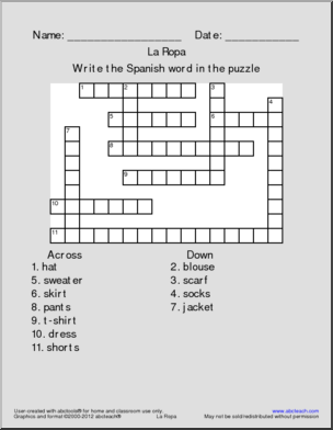 Content / Languages/ESL / Spanish / Spanish 1 / Vocabulario/Vocabulary / La ropa/Clothing