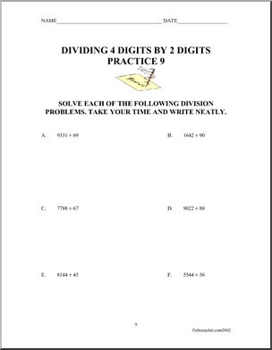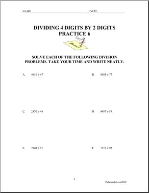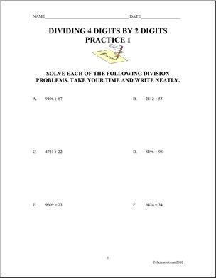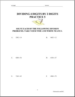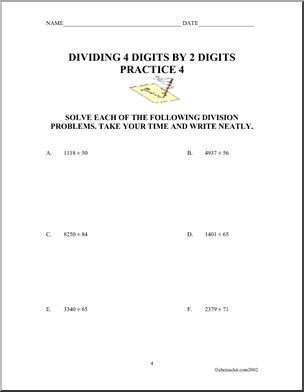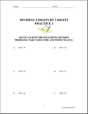 This 4 digits by 2 digits (set 1) Division is perfect to practice division skills. Your elementary grade students will love this 4 digits by 2 digits (set 1) Division. A printable 10 page workbook covering division practice for 4 digit numbers, that are divded by 2.