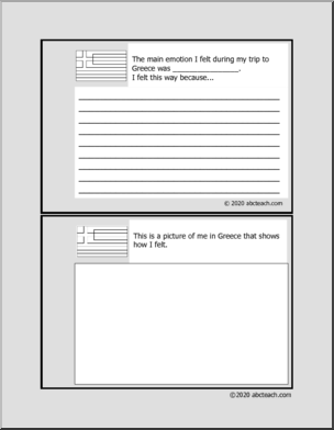 Write a booklet report about a real or imaginary trip to Greece. These pages include directions for writing specific information about your trip, including holidays, people, sight-seeing, and daily journal pages. Prompts develop narrative, descriptive, and persuasive writing skills. One of several in the “A Trip to…” series on our member site.