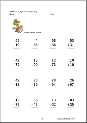 This Addition 2 digits (set 2) Worksheet is perfect to practice addition skills. Your elementary grade students will love this Addition 2 digits (set 2) Worksheet. Printable addition worksheets, 5 page workbook that concentrates on adding 2 digit numbers to solve each problem. Includes answer key.