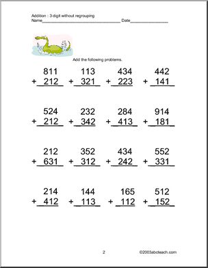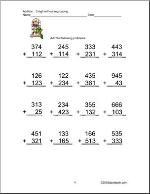 This Addition 3 digits (set 1) Worksheet is perfect to practice addition skills. Your elementary grade students will love this Addition 3 digits (set 1) Worksheet. Printable addition worksheets, 5 page workbook that concentrates on adding 3 digit numbers to solve each problem. Includes answer key.