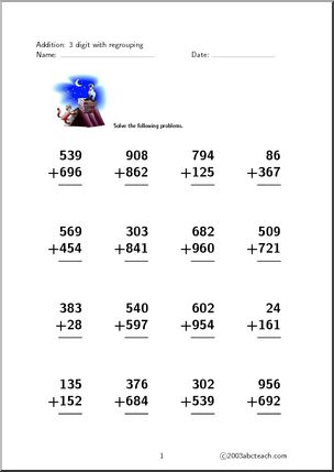 This Addition 3 digits (set 3) Worksheet is perfect to practice addition skills. Your elementary grade students will love this Addition 3 digits (set 3) Worksheet. Printable addition worksheets, 5 page workbook that concentrates on adding 3 digit numbers to solve each problem. Includes answer key.
