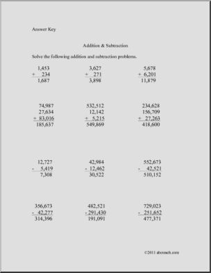 This Addition and Subtraction (medium) (elem) Math is perfect to practice addition skills. Your elementary grade students will love this Addition and Subtraction (medium) (elem) Math. Addition & subtraction printable worksheet, includes an answer key.