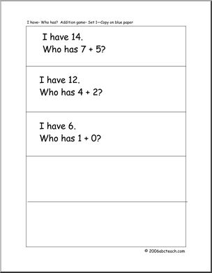 This Addition (set 1) Math Game is perfect to practice addition skills. Your elementary grade students will love this Addition (set 1) Math Game. “I have… Who has?” with addition up to 18.