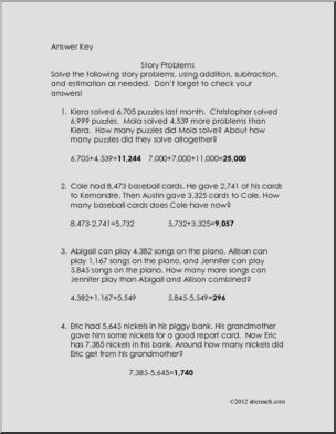 Addition, Subtraction, Estimation Word Problems (upper elem)