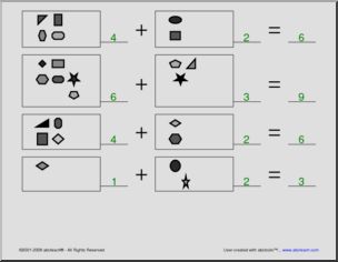This Addition to 10 (pre-k/primary) 4 Worksheet is perfect to practice addition skills. Your elementary grade students will love this Addition to 10 (pre-k/primary) 4 Worksheet. Count the number of shapes in each group and write the total. With grayscale graphics.