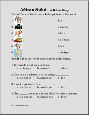 A rebus story followed by comprehension questions. Good for primary or early readers.