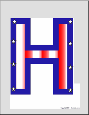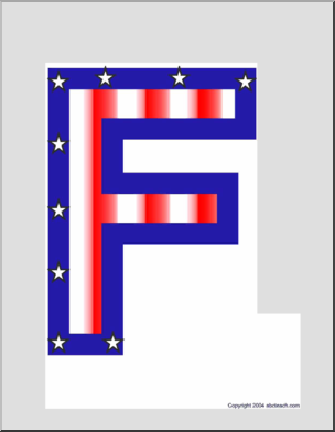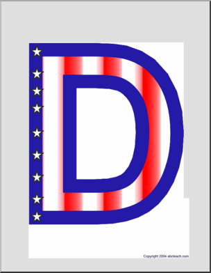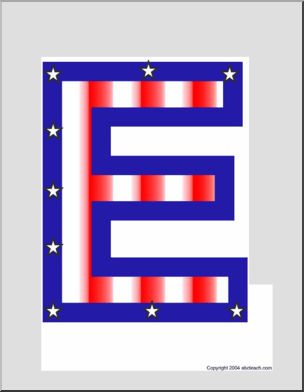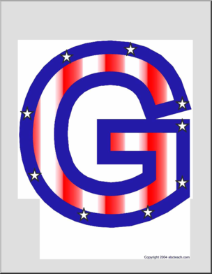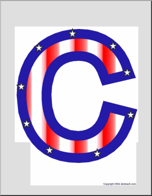 The uppercase letters of the alphabet, colorfully presented with a patriotic theme. One letter per page. Great for bulletin boards, desk decorations, and more. These match our patriotic calendar header set.