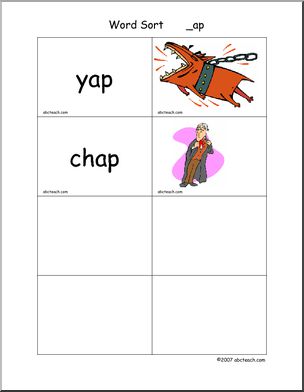 Use this ‘Word Sort Center: -ap Words’ printable worksheet in the classroom or at home. Your students will love this ‘Word Sort Center: -ap Words’. Cards with words and matching pictures for words ending in -ap; these can be used in matching games and word sort center activities.