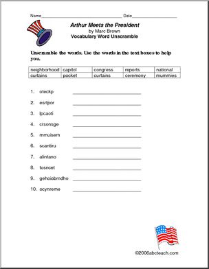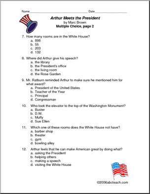 Use this ‘Book: Arthur Meets the President (elementary)’ printable worksheet in the classroom or at home. Your students will love this ‘Book: Arthur Meets the President (elementary)’. Book comprehension and vocabulary enhancement for this installment of Marc Brown’s popular “Arthur” series. Arthur’s winning essay means he gets to meet the President!