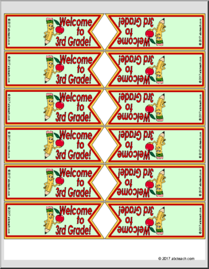 Wrap 1, 2, or 3 pencils with these colorful flags for a great welcome gift or first day of school craft. Messages include “Welcome Back to School” or “Welcome to ____” (pre-k through 5th grade).