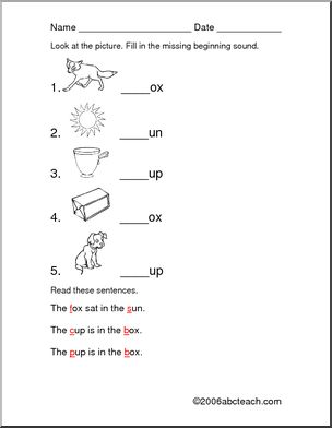 Content / Language Arts / Phonics / Phonics Worksheets / Beginning Sounds