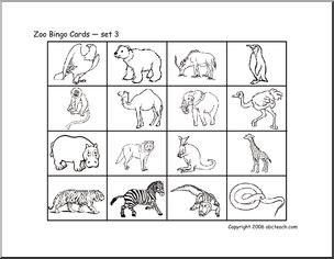 Bingo Cards: Zoo (set 3) (b/w)