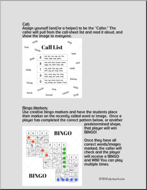 Detailed instructions with pictures explaing the rules of BINGO and how to play.