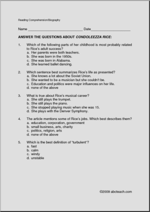 One-page biography of the former Secretary of State, followed by multiple choice questions.