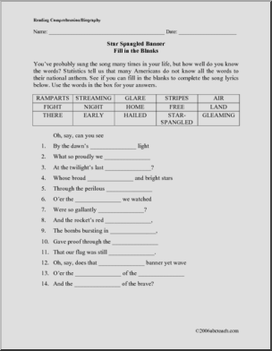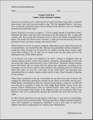 Biography of the “Star Spangled Banner” writer, with comprehension questions.