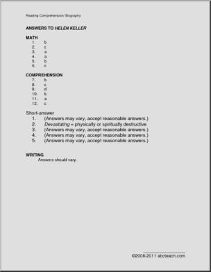An informative biography of Helen Keller, followed by math-based and reading-based comprehension questions and a short essay question. Helen Keller was born June 27th.