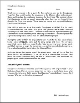 A two page reading comprehension on the life of Sacajawea, explorer and guide with the Lewis & Clark expedition. Reading comp questions and matching exercise.