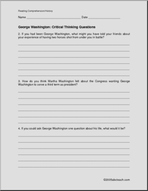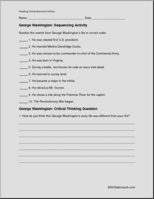Biography of the first President of the United States, with comprehension and sequencing questions.