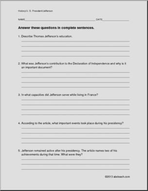 Biography: U.S. President Thomas Jefferson (upper elem/middle)