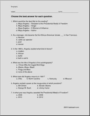 A one page biography of track and field Olympic champion, Usain Bolt, is followed by a set of multiple choice and a set of short answer questions.