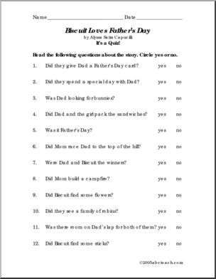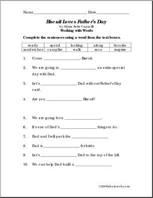 Use this ‘Book: Biscuit Loves Father’s Day (primary)’ printable worksheet in the classroom or at home. Your students will love this ‘Book: Biscuit Loves Father’s Day (primary)’. Book comprehension and vocabulary enhancement for this installment of Alyssa Satin Capucilli’s popular “Biscuit” series. Join Biscuit for fun times with Dad — exploring, playing, and sharing.