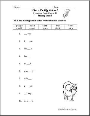 Use this ‘Book: Biscuit’s Big Friend (primary)’ printable worksheet in the classroom or at home. Your students will love this ‘Book: Biscuit’s Big Friend (primary)’. Book comprehension and vocabulary enhancement for this installment of Alyssa Satin Capucilli’s popular “Biscuit” series. Sam is a big dog and Biscuit’s newest friend.