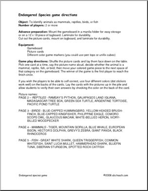 Board Game: Endangered Animal (elem/upper elem)