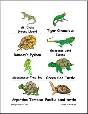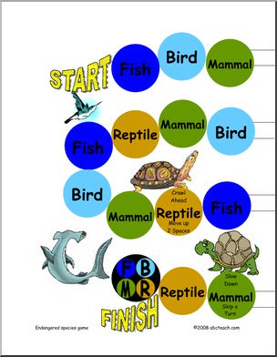 Decide whether each endangered animal is a fish, bird, reptile, or mammal. Move ahead on the board to the appropriate space.