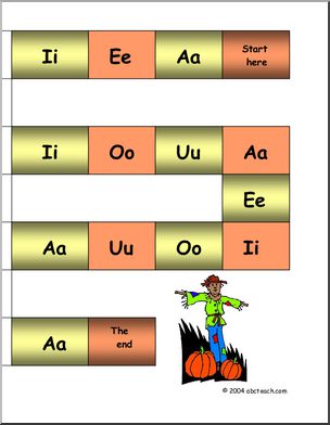 Practice matching long and short vowel sounds to the correct letter with this fun Halloween-themed board game. Includes gameboard and game cards.