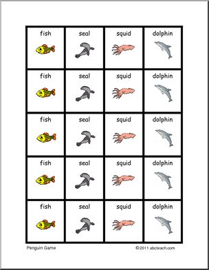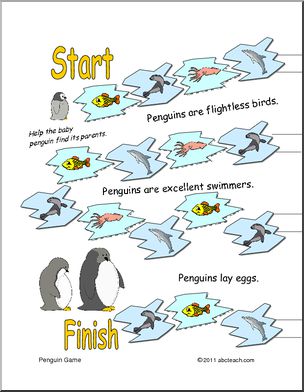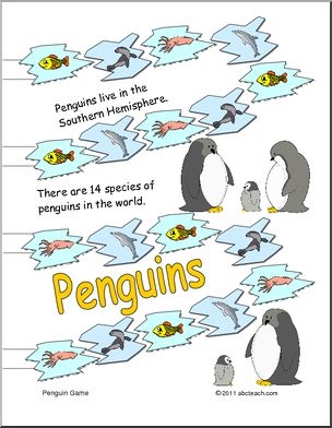 A colorful game board that moves the baby penguin towards its parents, with named and illustrated game pieces of sea creatures. Instructions included.