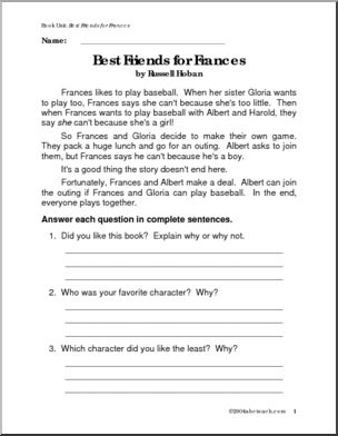 From straight reading comprehension to character empathy and re-imagined endings, this book unit takes a thorough look at Russell Hoban’s tale of friendship.