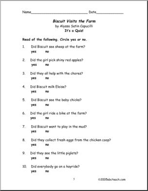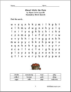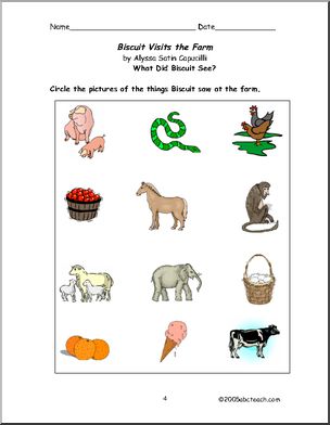 Who will Biscuit meet on the farm? Join Biscuit and all of his friends on their visit. This book unit enhances vocabulary, reading, and word use skills in conjunction with Alyssa Satin Capucilli’s book.