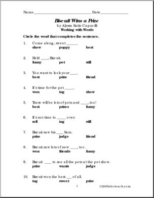 Book comprehension and vocabulary enhancement for this installment of Alyssa Satin Capucilli’s popular “Biscuit” series. Biscuit gets excited when he is entered in a pet show.