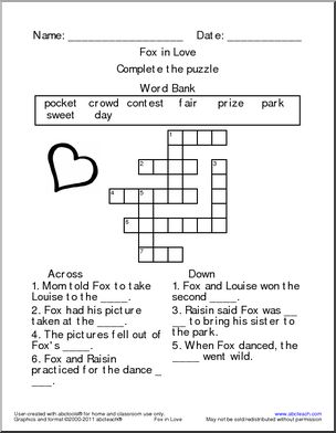 A six page set of activities for the James Marshall book, Fox in Love. Includes word unscramble, completion, true/false and short answer questions, with a writing and drawing prompt and a word search and crossword puzzle.