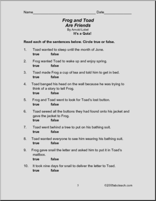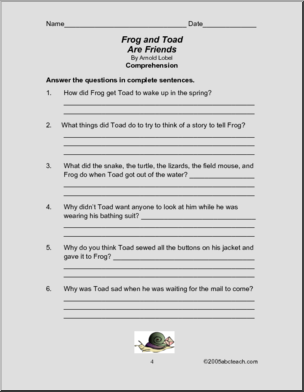 Comprehension questions and vocabulary exercises to accompany a story from Arnold Lobel’s beloved Frog and Toad series.