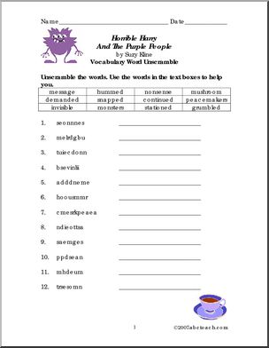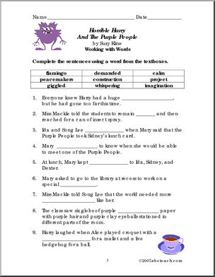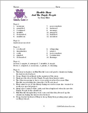 Cloze exercise, crossword, word search, word unscramble, and short answer comprehension questions to accompany Suzy Kline’s story of an imaginative boy.