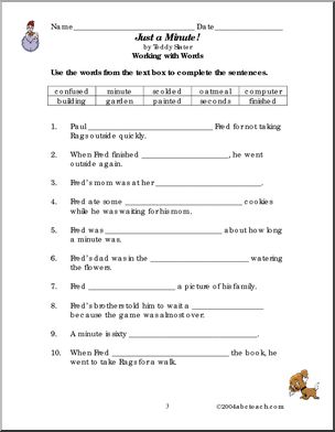 Enhances comprehension and vocabulary skills for Teddy Slater’s book about telling time.
