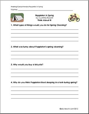 This book unit, based on “Poppleton in Spring” by Cynthia Rylant. Includes comprehension questions, critical thinking, and sequencing for the entire story.