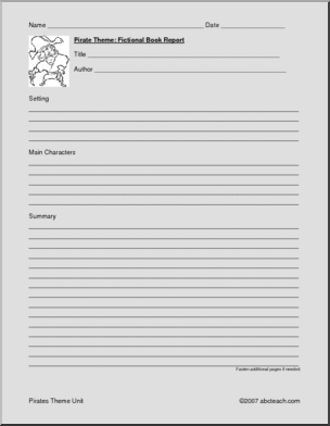 Two report forms guide students through the writing of book reports for fiction and non-fiction books about pirates.
