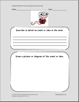 Here is a non-fiction book report template perfect for reading month. It addresses the Common Core curriculum for Informational text, Key Ideas and Details 1-3. CC: ELA: RI.1-3:1