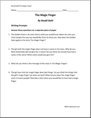 A study unit for Roald Dahl’s The Magic Finger with comprehension questions, writing prompts, vocabulary, answer key.