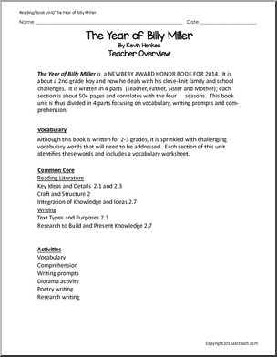 Book Unit: The Year of Billy Miller (grades 2-3)